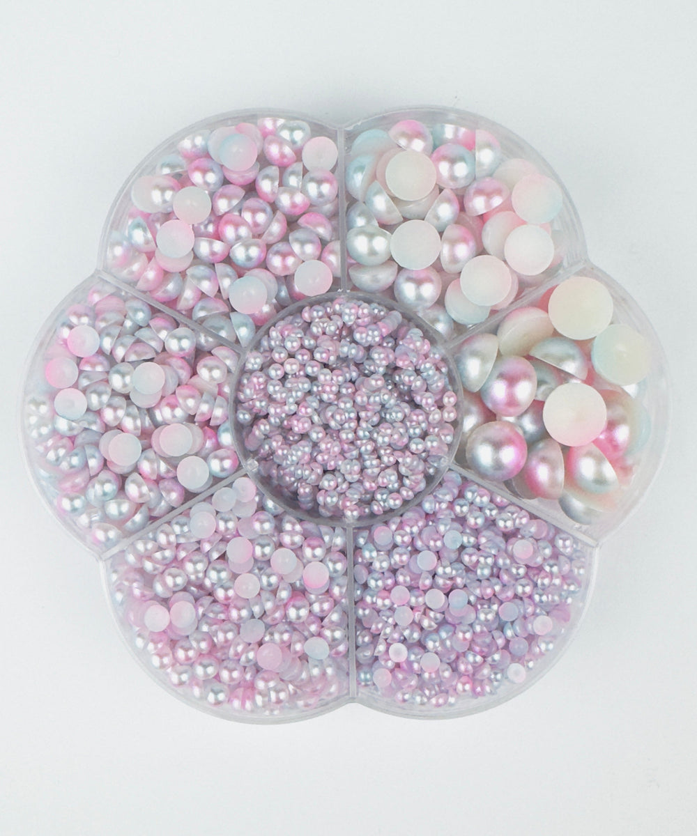 Le mezze perle sono accessori che offrono a qualsiasi manicure un aspetto unico e, in combinazione con caviale e cristalli, ti aiuteranno a creare veri gioielli sulle unghie delle tue clienti. La scatola di grandi dimensioni ti garantirà la quantità necessaria probabilmente per i prossimi 10 anni.